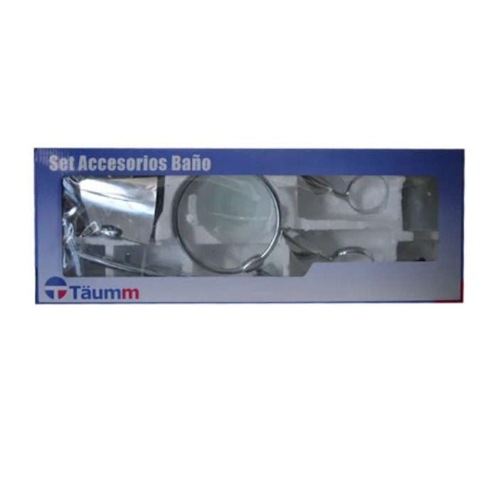 Set de 6 piezas para baño, posee gancho individual, toallero barra, toallero argolla, portavaso, portapapel y portajabón.