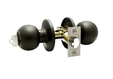 Cerradura de pomo acceso principal para puertas de 40 a 50mm. De espesor, sólo cilindro exterior, pomo interior libre, pomo exterior fijo, acabado negro colonial.