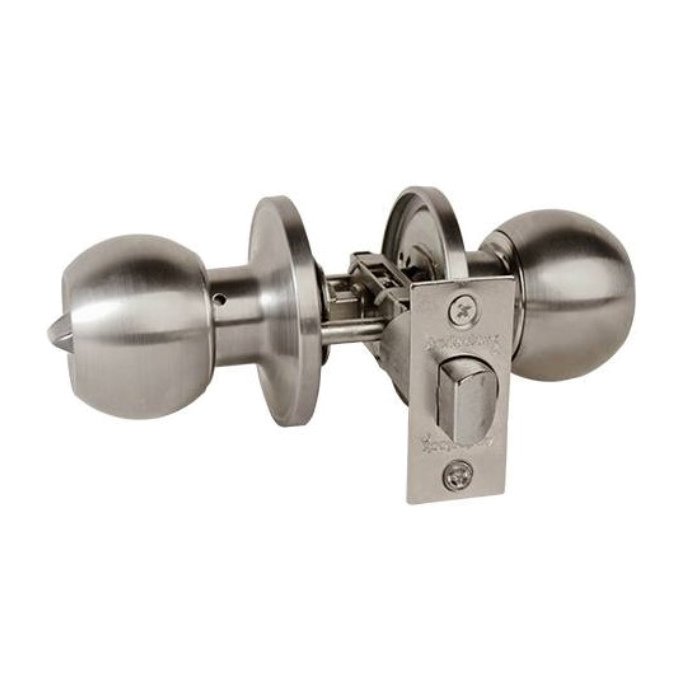 Cerradura de pomo para baño y cocina, para puertas de 40 a 50mm. De espesor, picaporte reversible,seguro interior, ranura de emergencia exterior, acabado acero inoxidable.