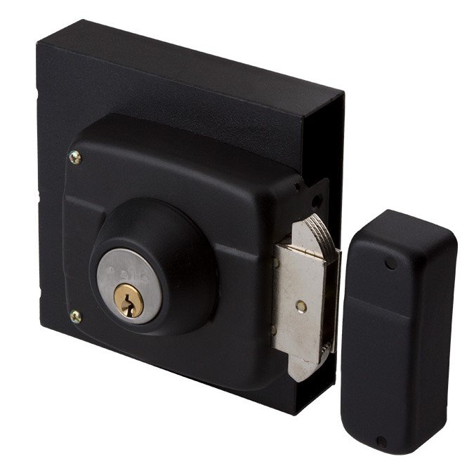 Cerradura sobreponer corredera con caja para puertas metálicas, rejas y portones de corredera. Cuerpo de acero reforzado de alta resistencia