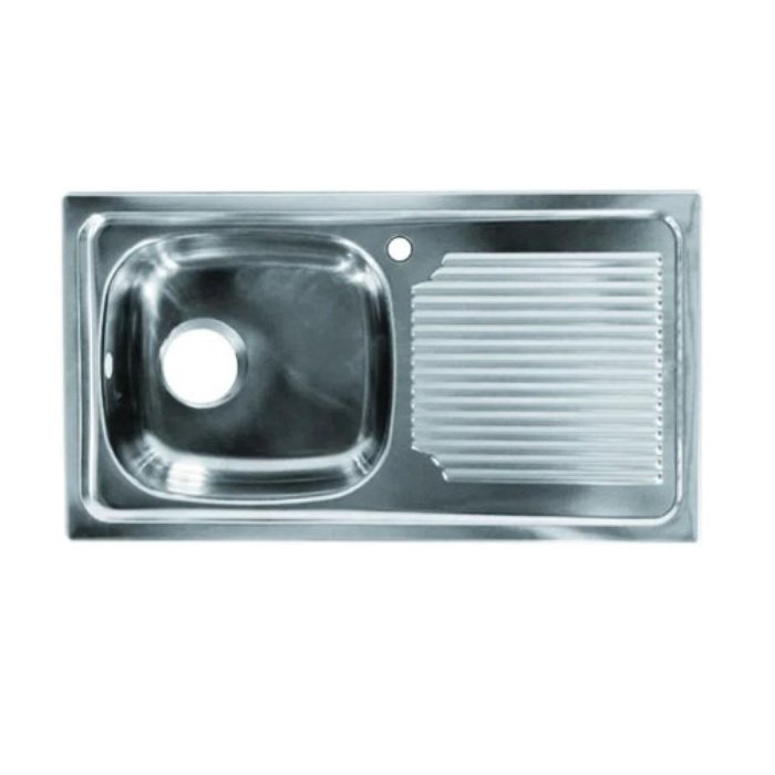 Fabricado en acero inoxidable, lo que asegura una máxima calidad y durabilidad, ya que es altamente resistente a la corrosión por agua y sales minerales, sus vértices soldados y doble pliegue en los contornos evita cortes en la instalación y lo hace un producto seguro en su cocina.
