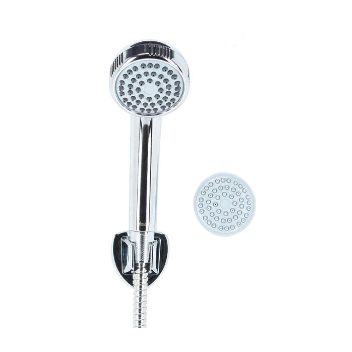 Juego de ducha 1 función (lluvia fina) con difusor desmontable, ideal para presión Media/Baja y ahorro de agua 30% (Uso opcional). Terminación cromado.