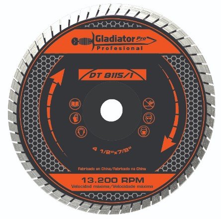 El disco diamantado turbo GLADIATOR PRO DT 8115/1 esta diseñado para trabajar distintos materiales tales como marmol , concreto , piedra , loseta etc , con el puedes lograr mejores acabados que discos de bordes segmentados.